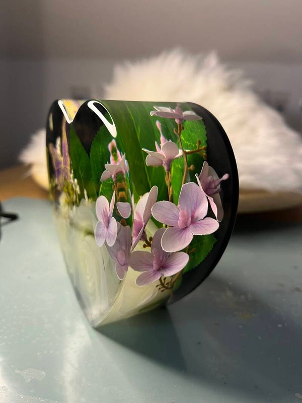 Prachtig transparant gegoten hart waarin bloemen en een vlinder zijn gegoten.