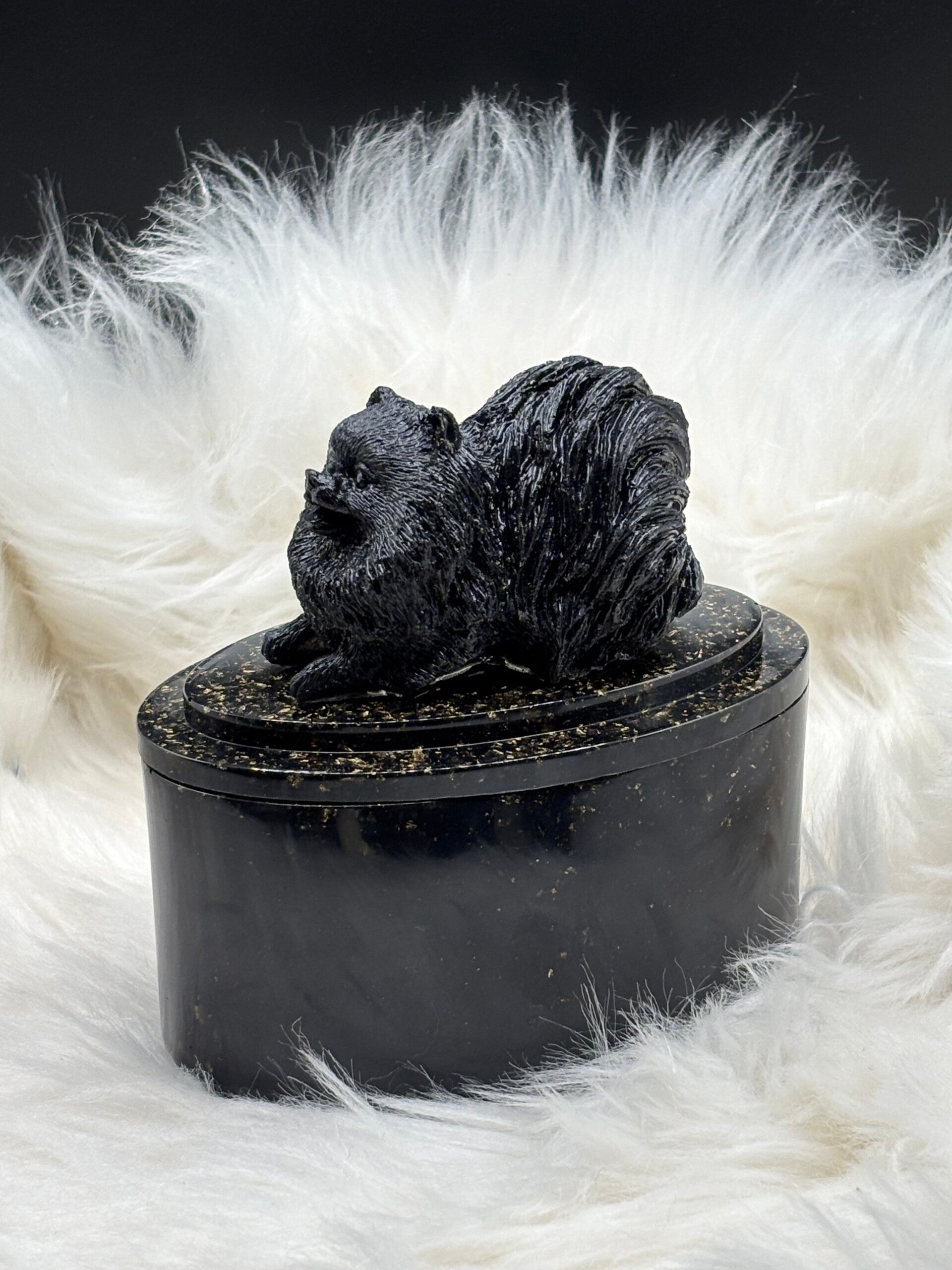 Mooie en unieke as-urn ovaal metchihuahua of ander hondje/poesje.