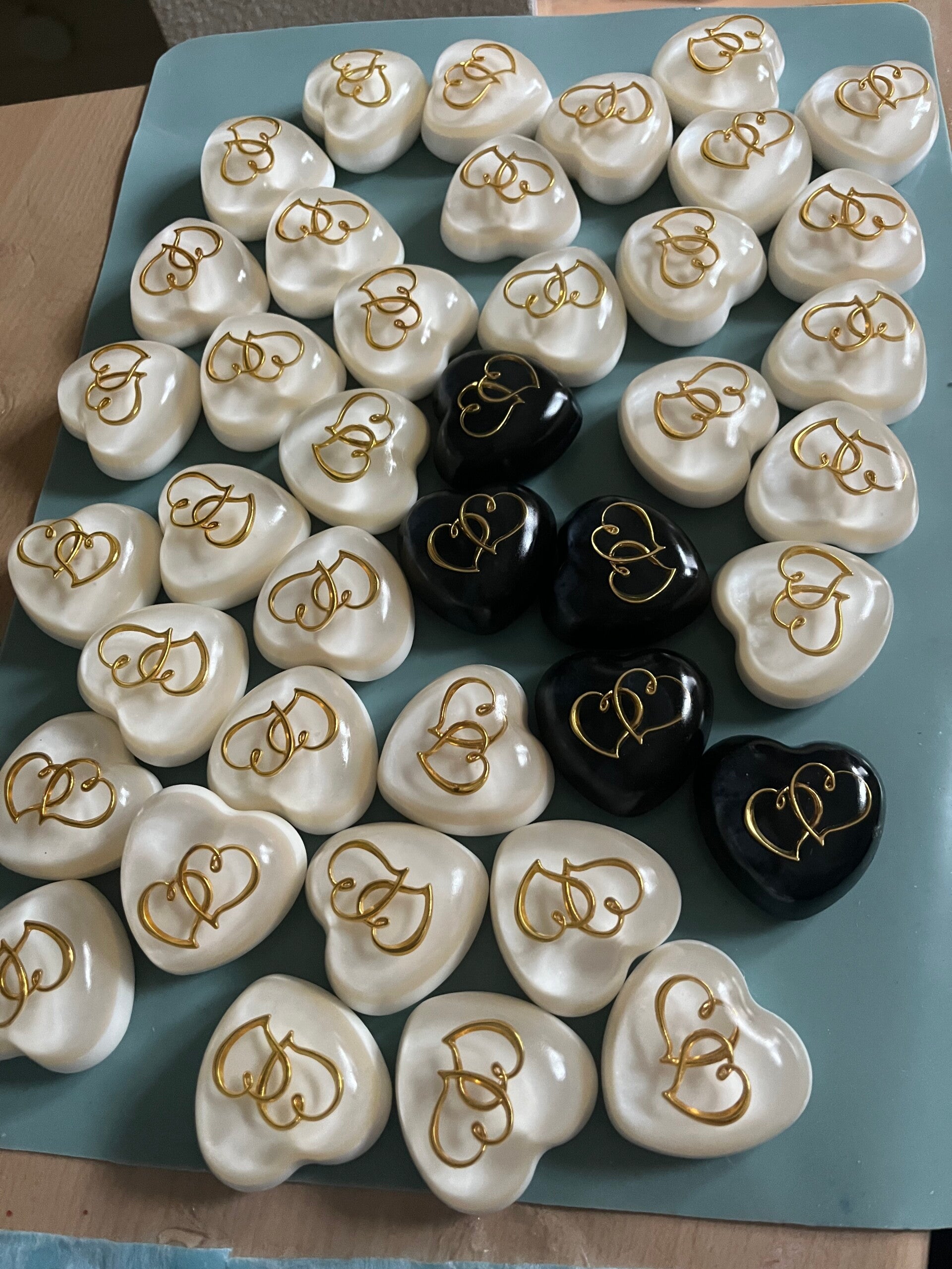 Exclusief verzendkosten. Hartje per stuk 4 euro, zakje of doosje 1 euro.