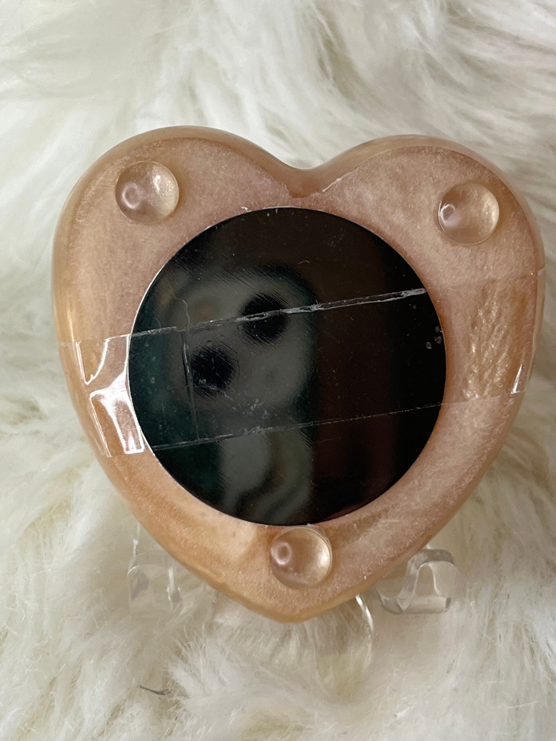 Prachtig ashart maat S in zalm/goud. Met afsluitbare uitsparing voor as of haar. Eenvoudig te vullen en af te sluiten met de bijpassende afsluitdop. Gegoten met epoxy, handwerk.