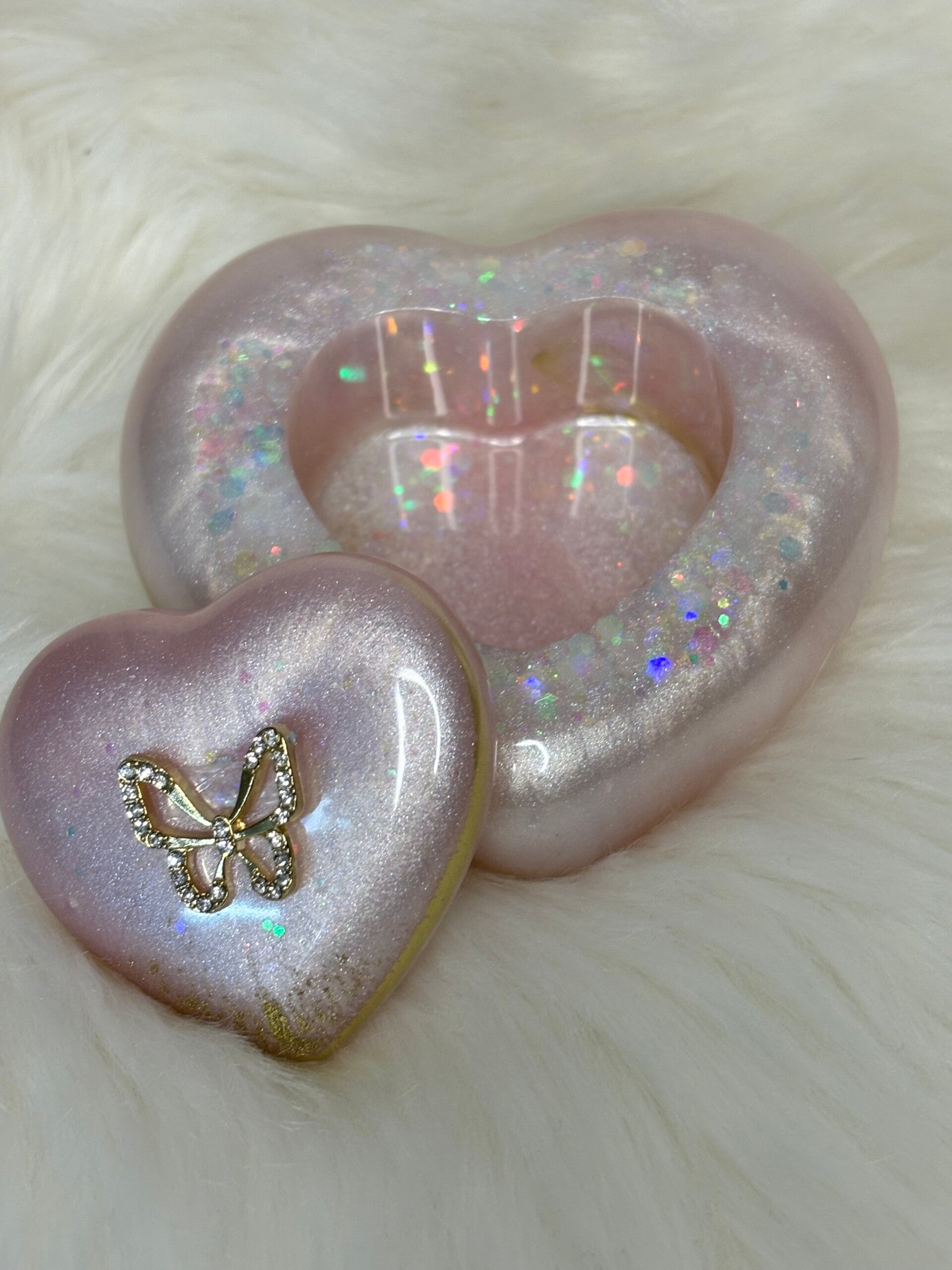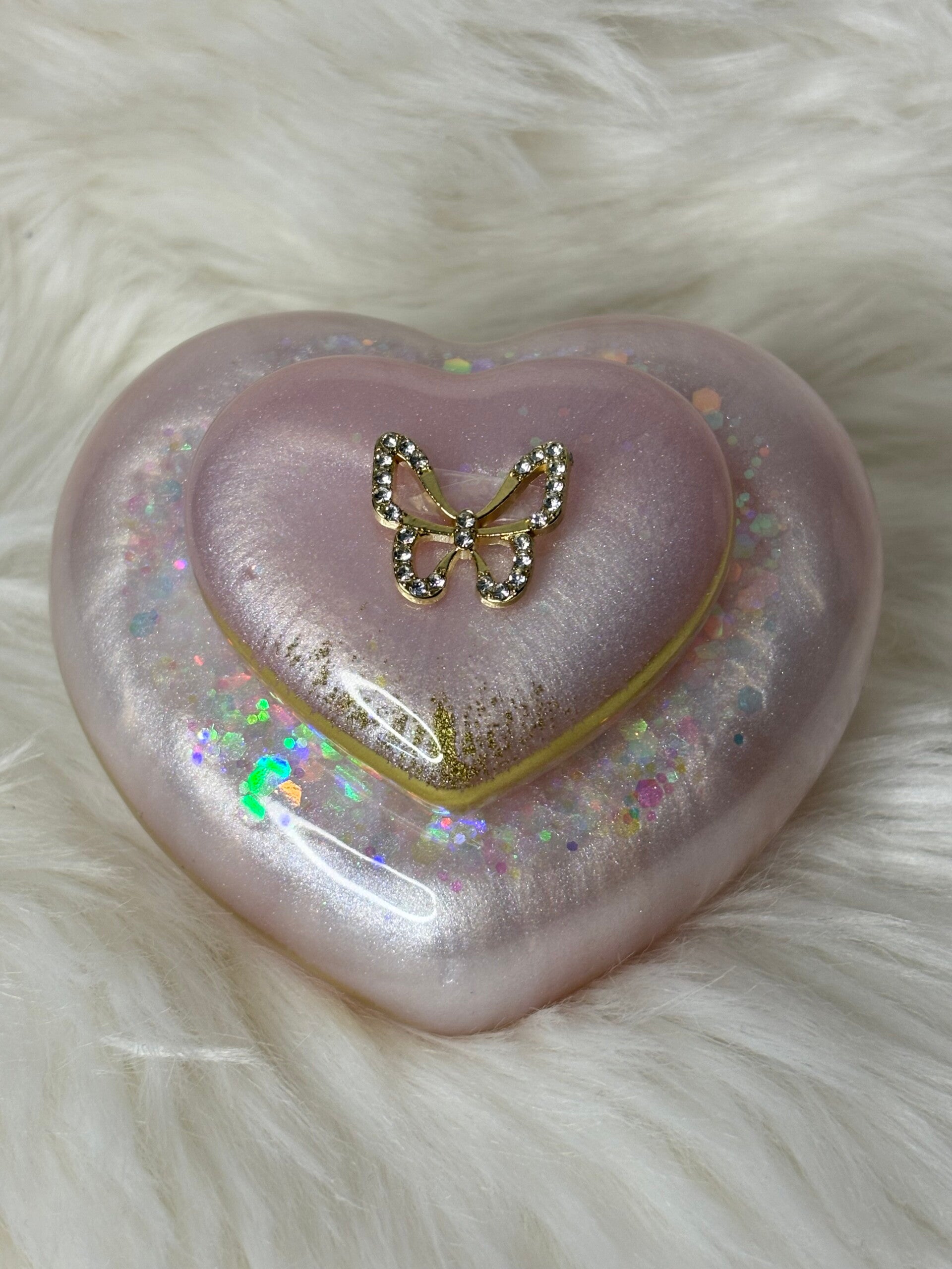 Prachtig doosje in hartvorm in roze/goud met sprankeltje