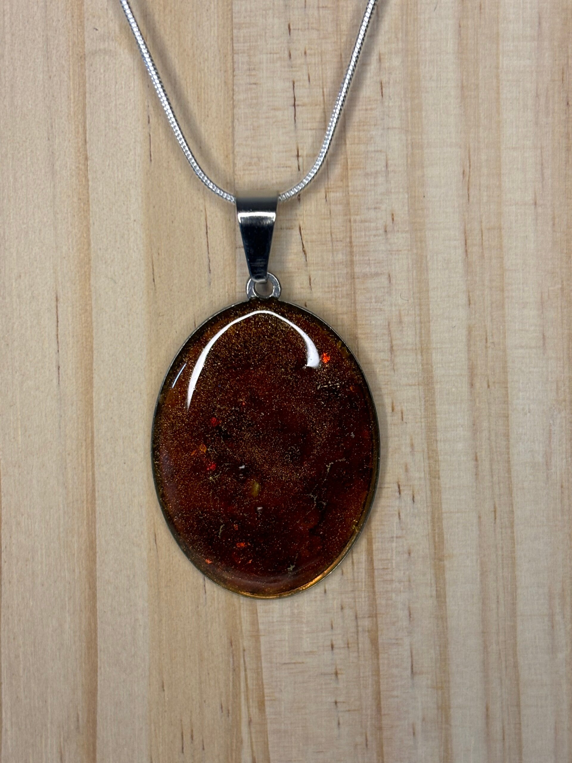 Prachtige ovale hanger met epoxy in donkerbrons/zilver