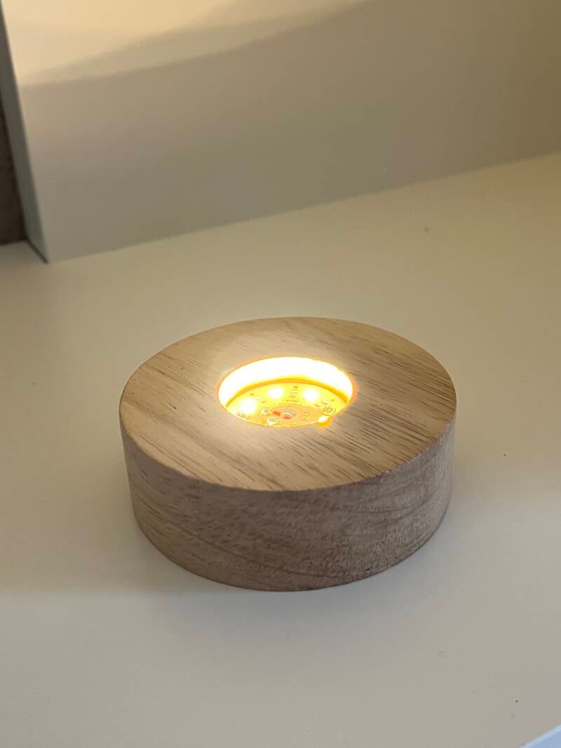 Optioneel: Houten display met verlichting, incl. batterijen: 10 euro