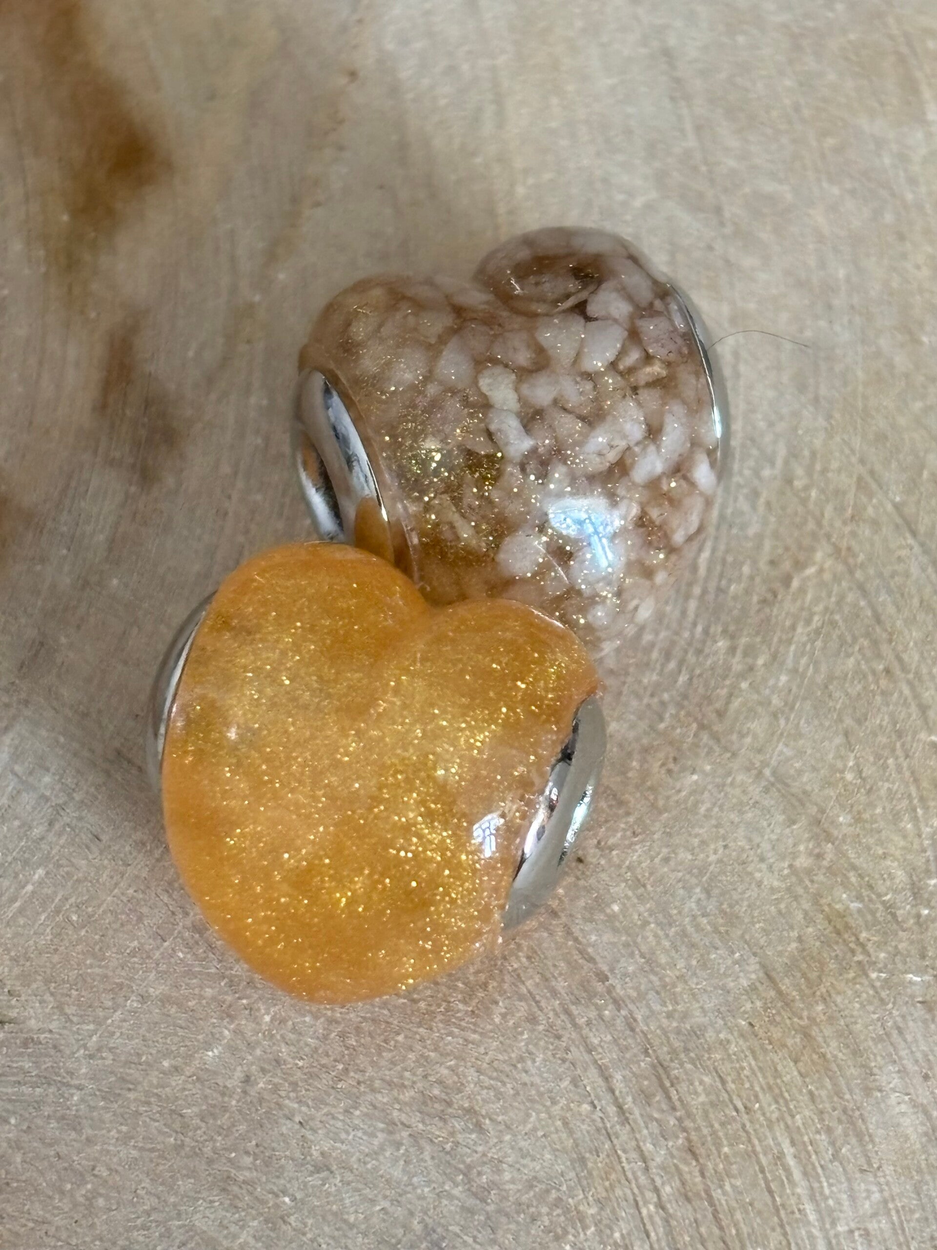 Unieke handgegoten as-bedel kraal in hartvorm. Handgegoten met epoxy