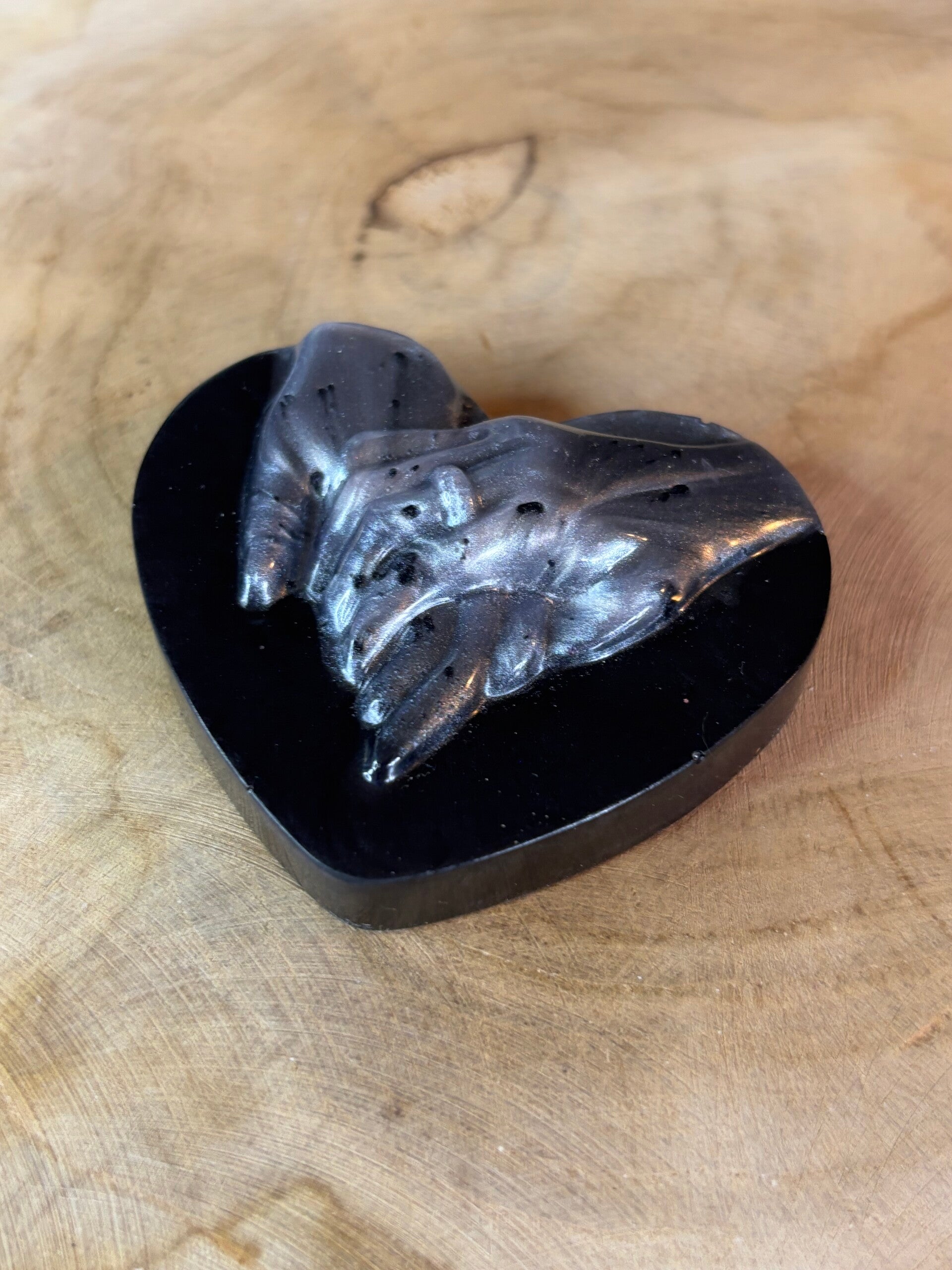 In het hartje is as verwerkt in de twee handen die op het hart liggen. Het hartje is op bestelling in een door jou gewenste kleur te maken. Neem hiervoor vrijblijvend contact op. Toevoegen van as van uw dierbare kost 10 euro extra.