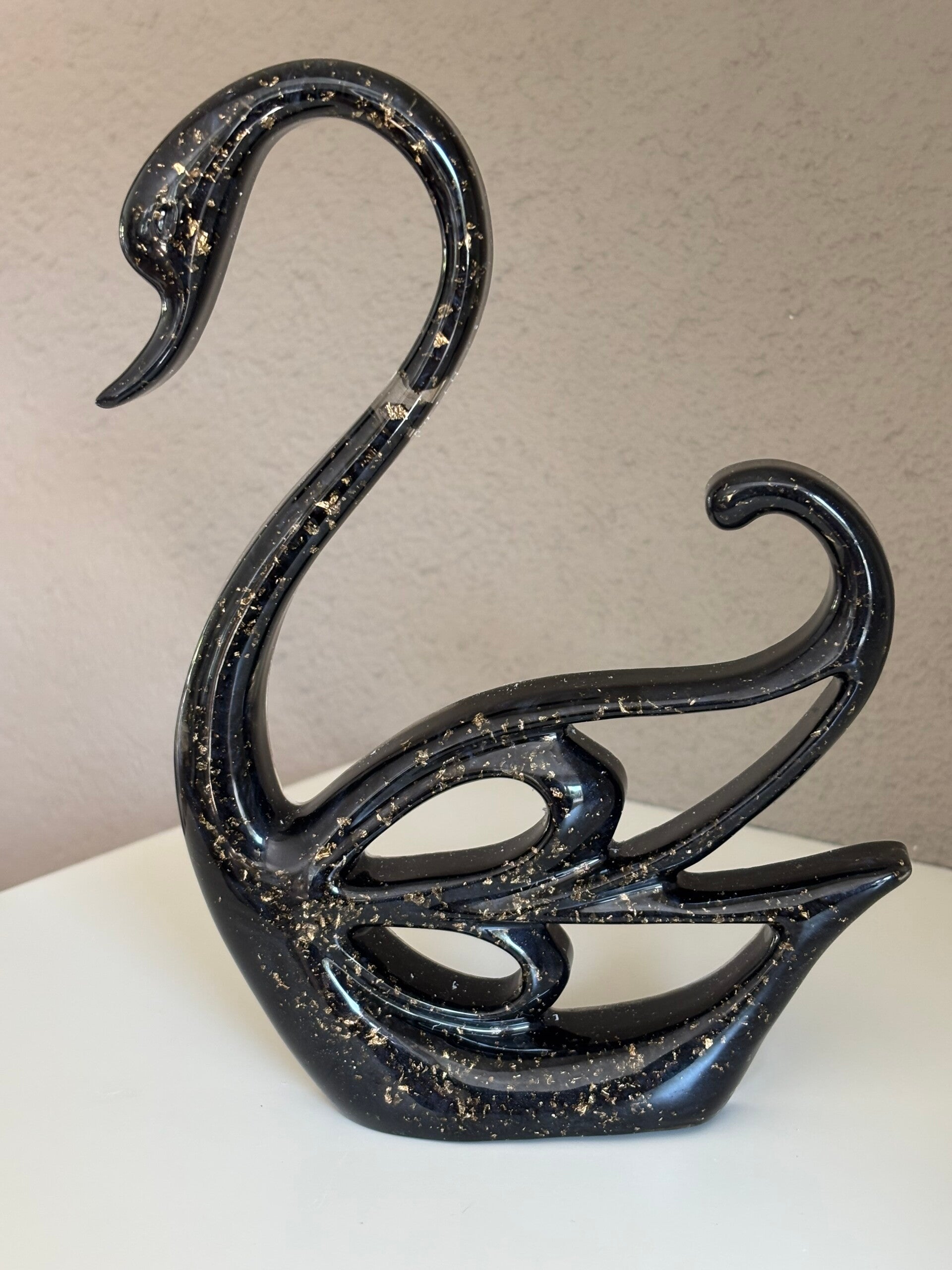 Prachtige decoratieve Zwaan in zwart/transparant/goud.