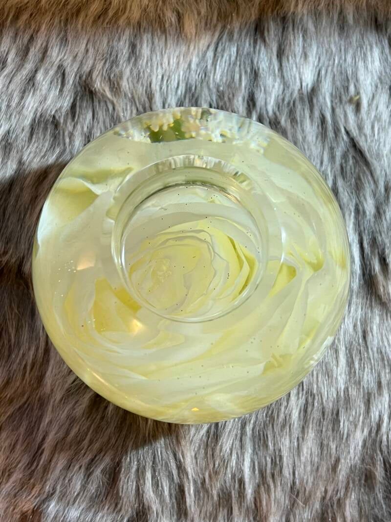 Epoxy bol kaarshouder met ingegoten witte kunstroos en kleine witte bloemetjes