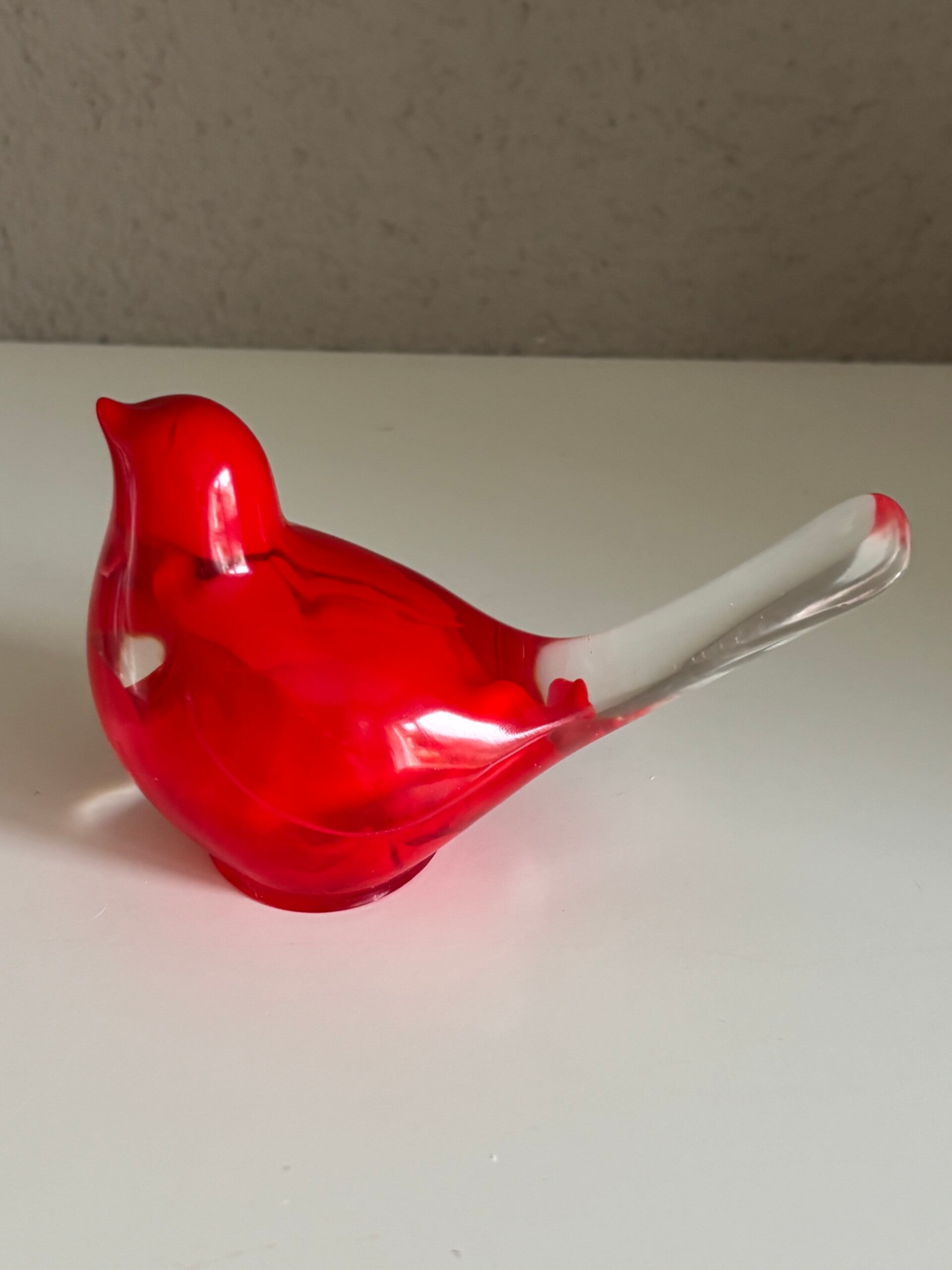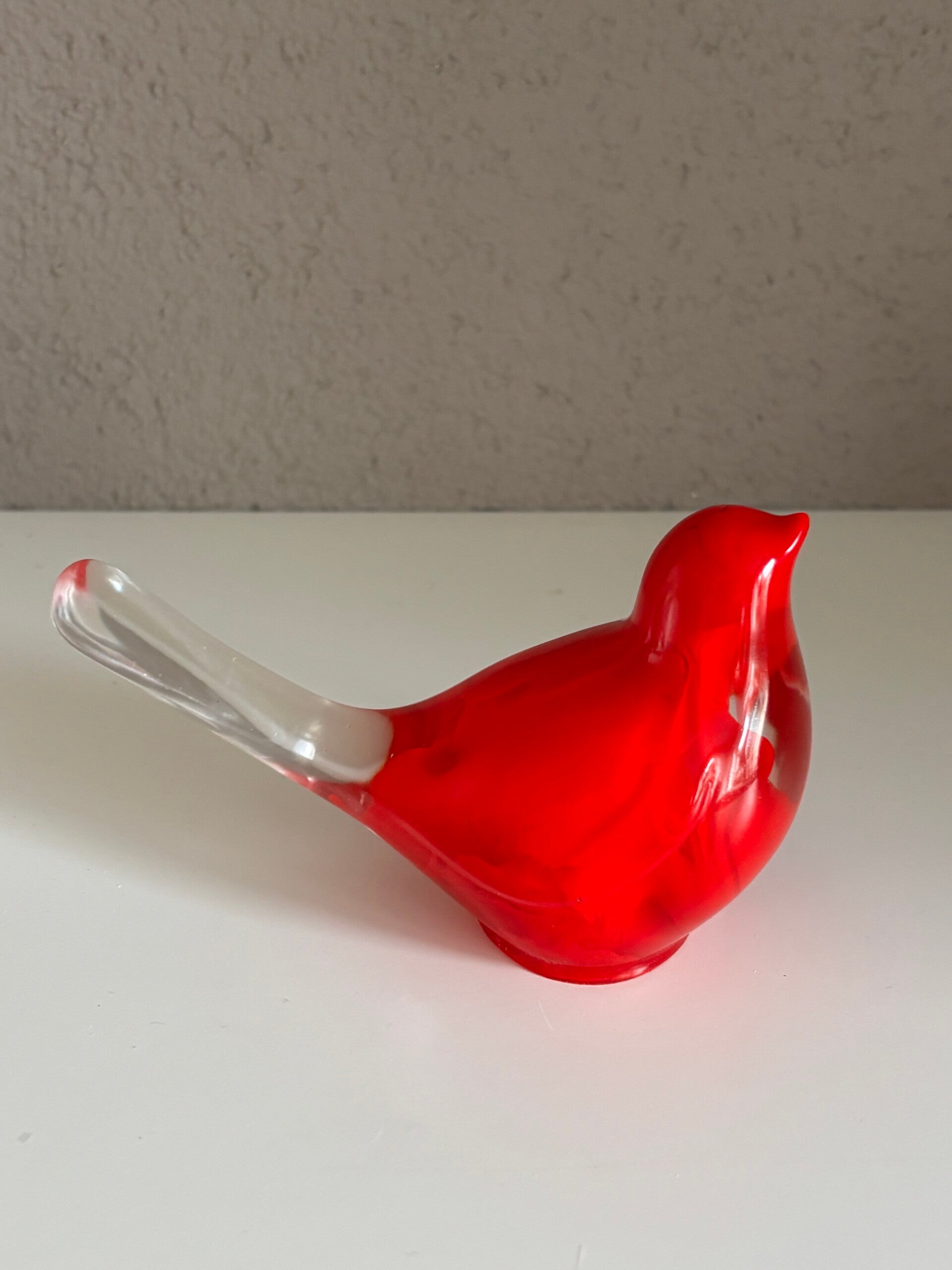 Decoratieve vogel in transparant/roodGegoten met epoxy, handwerk
