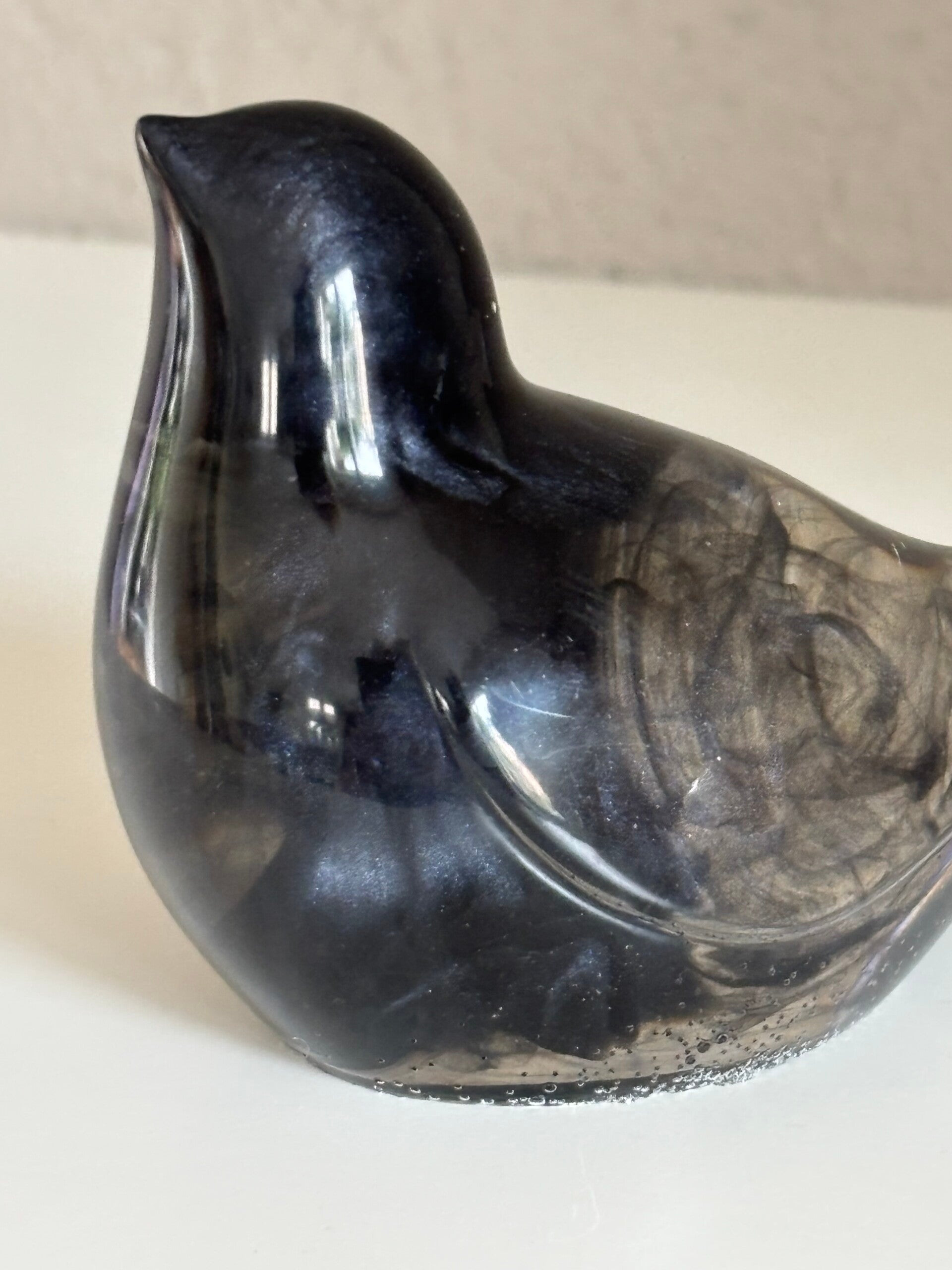 Decoratieve vogel in transparant/zwartGegoten met epoxy, handwerk