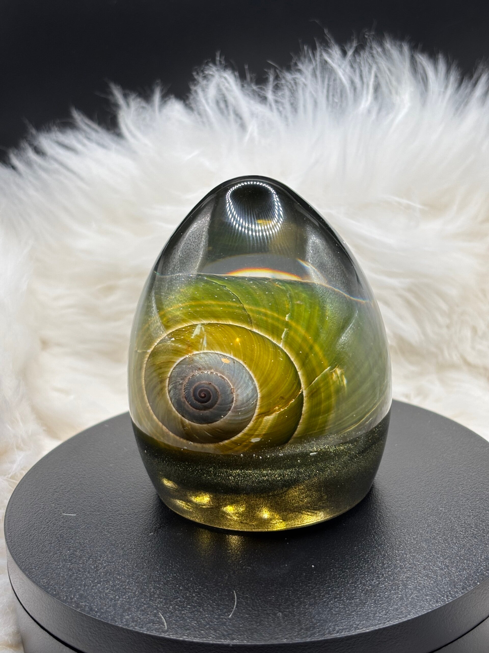 Sfeerlampje met prachtige ingegoten groene heremietkreeftschelp.