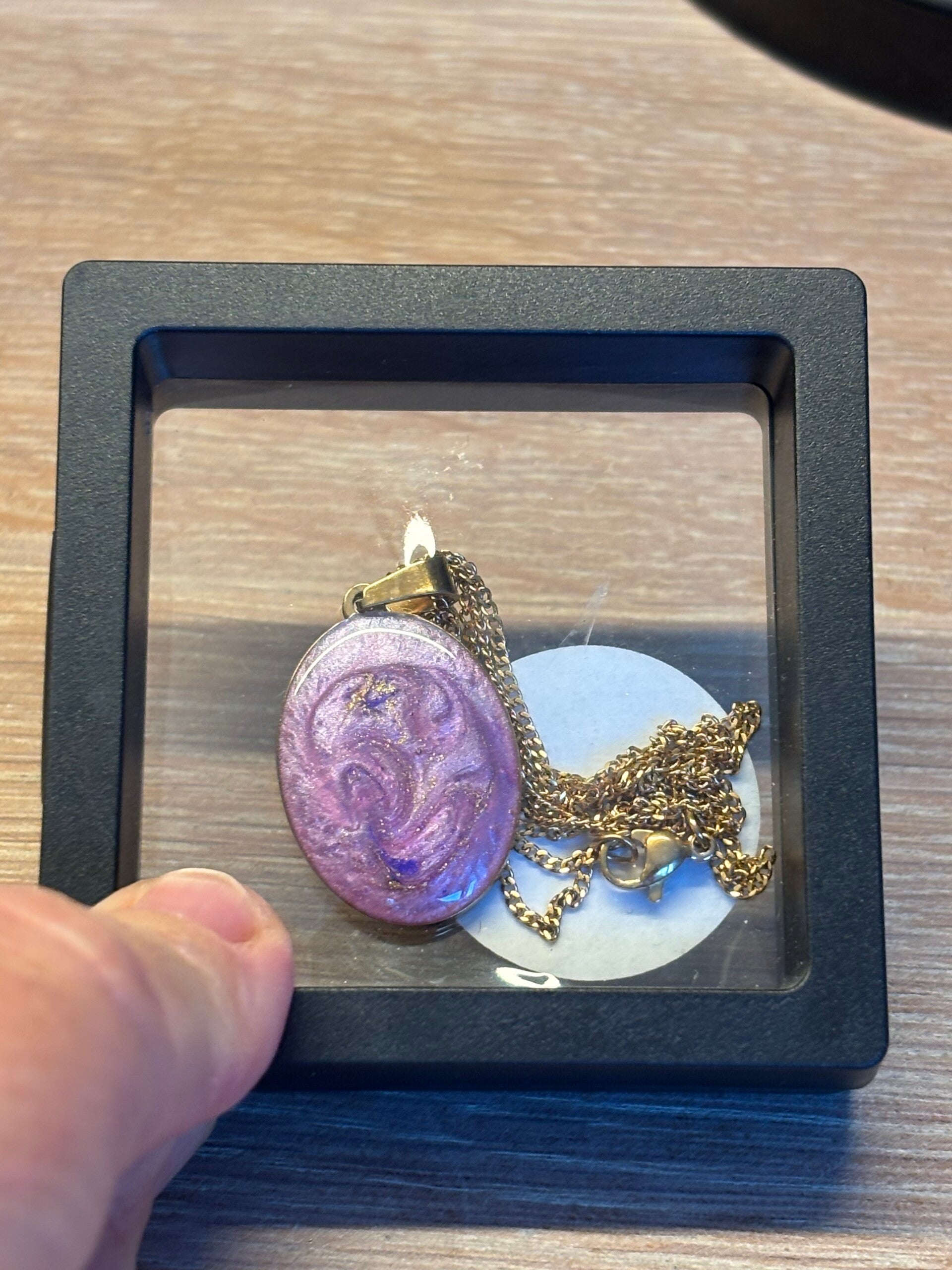 Prachtige ovale hanger met epoxy in rose/lilac/goud.