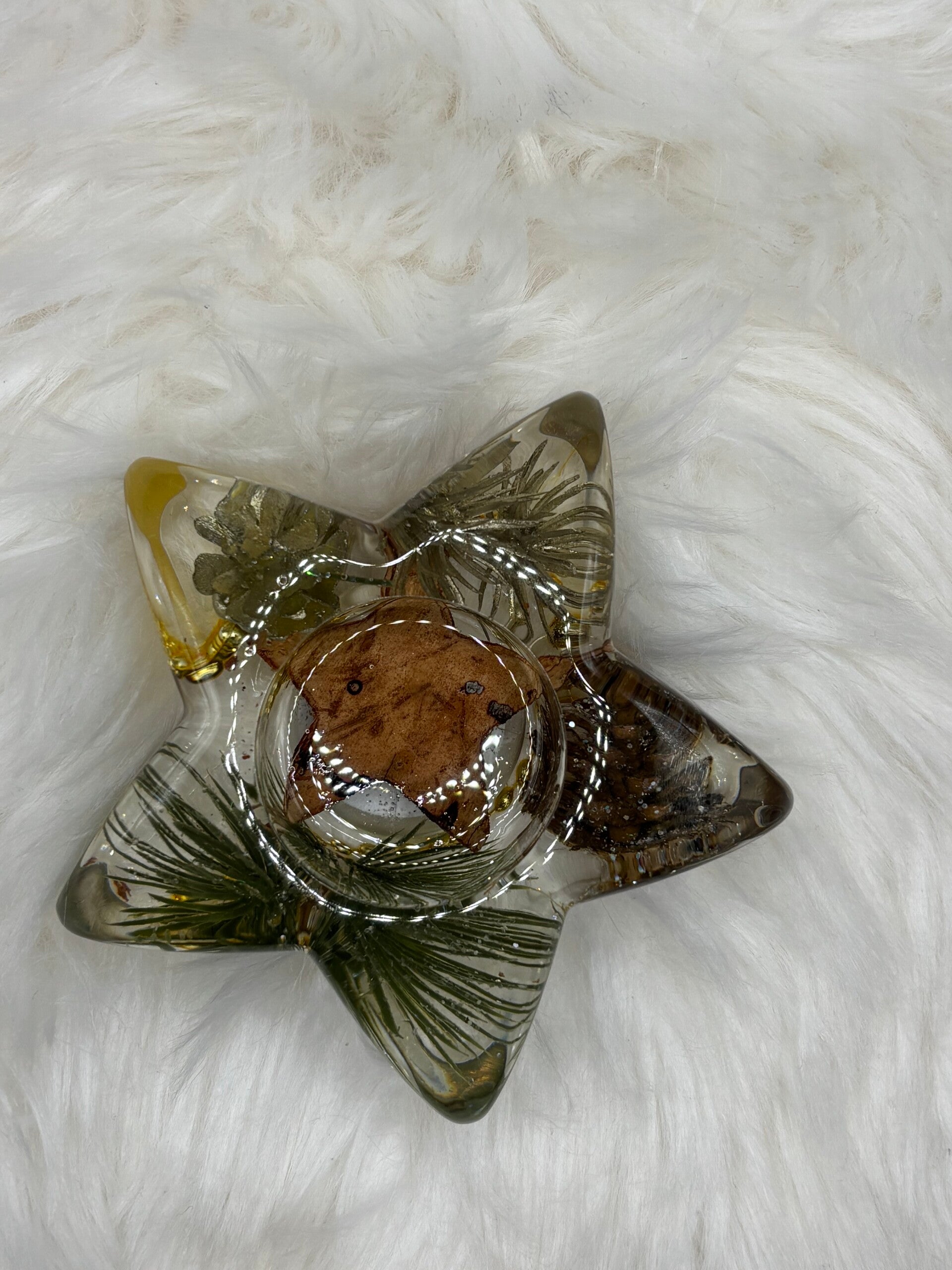 Theelichthouder ster “kerst” in transparant met kerstitems