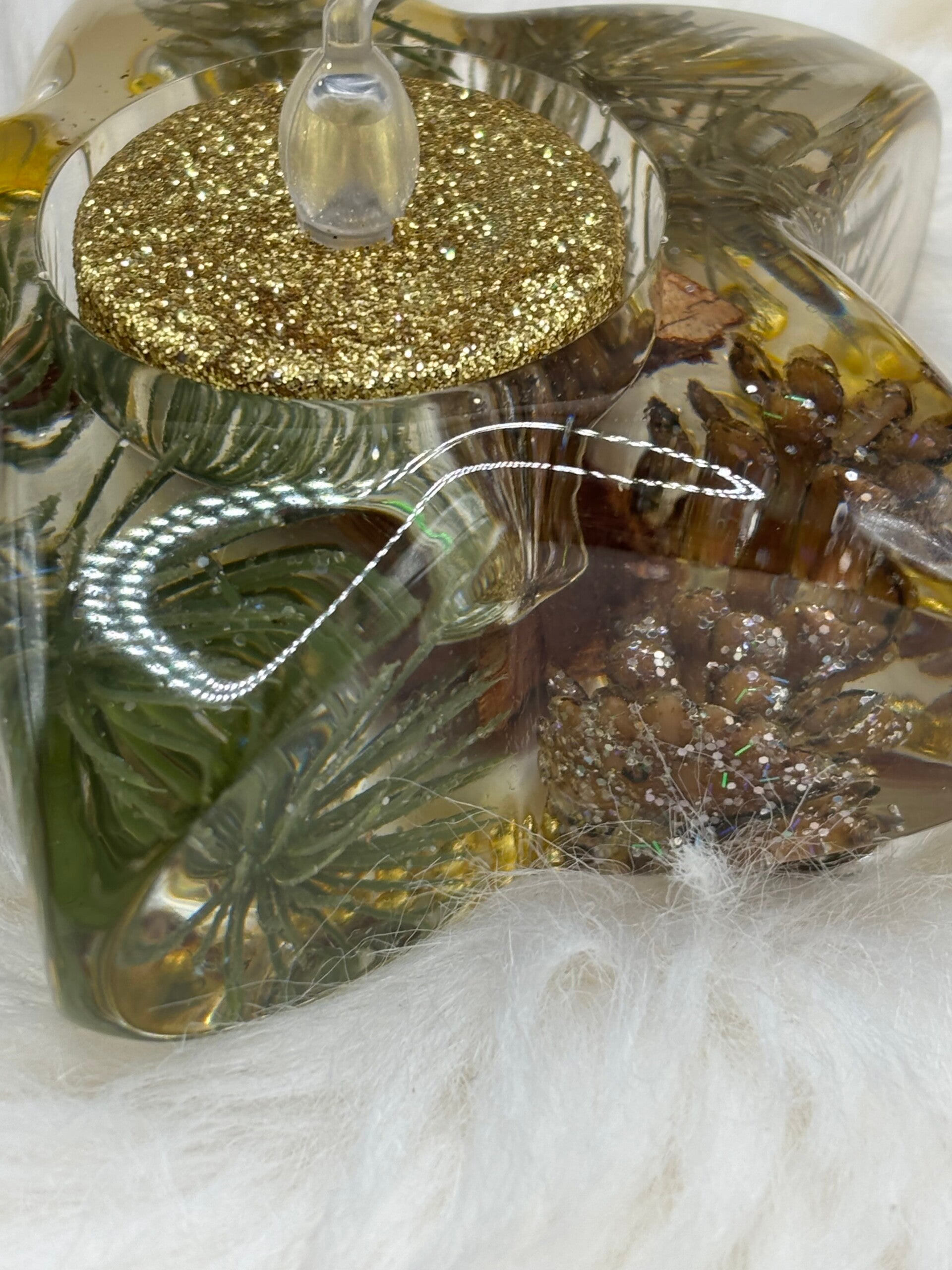Theelichthouder ster "kerst" in transparant met kerstitems