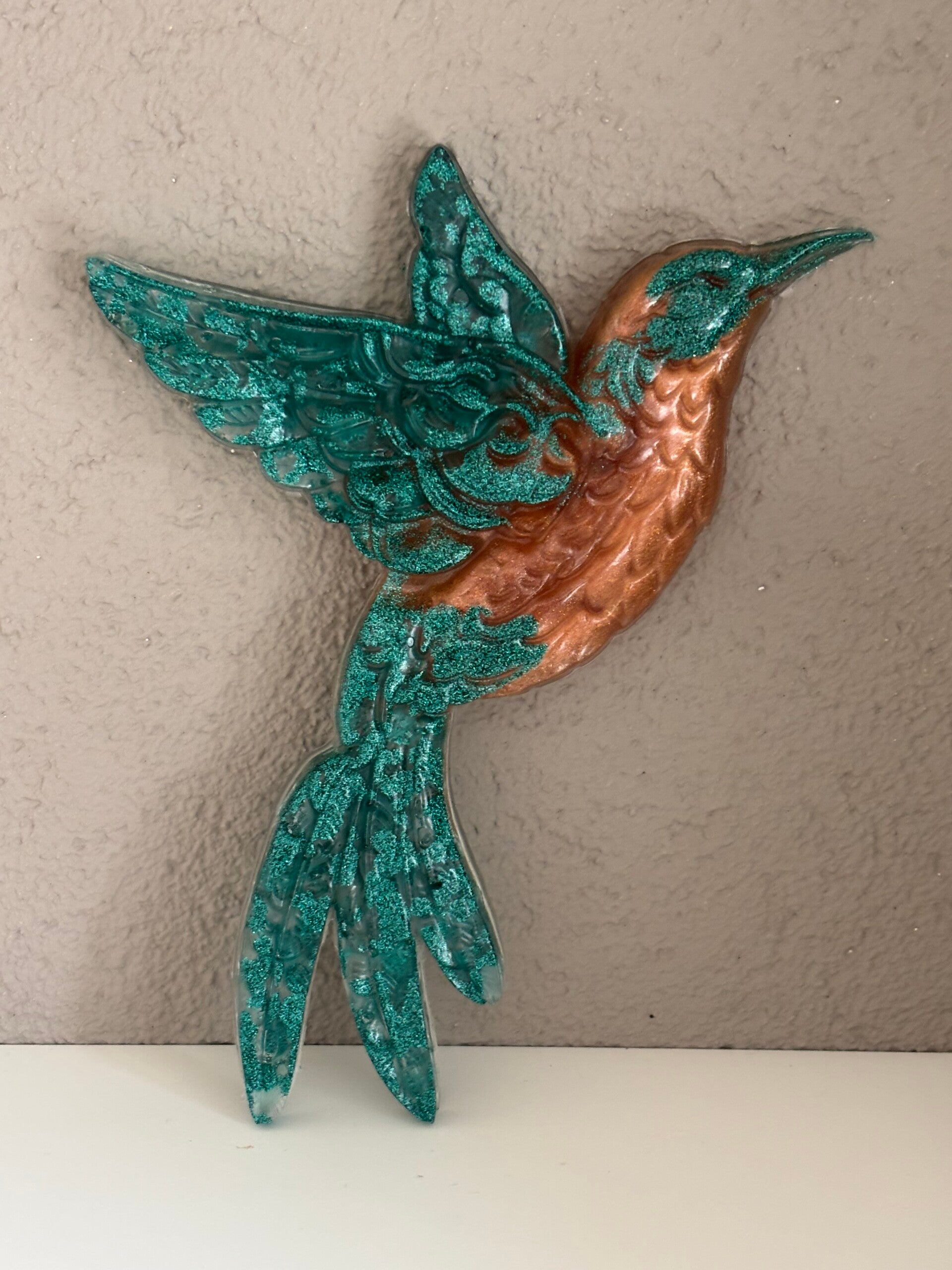 Prachtige hanger Kolibri in turquoiseblauw/brons/glitter