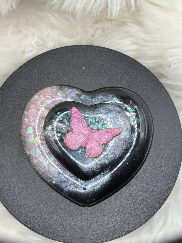 Prachtig doosje in hartvorm in zwart/roze/wit