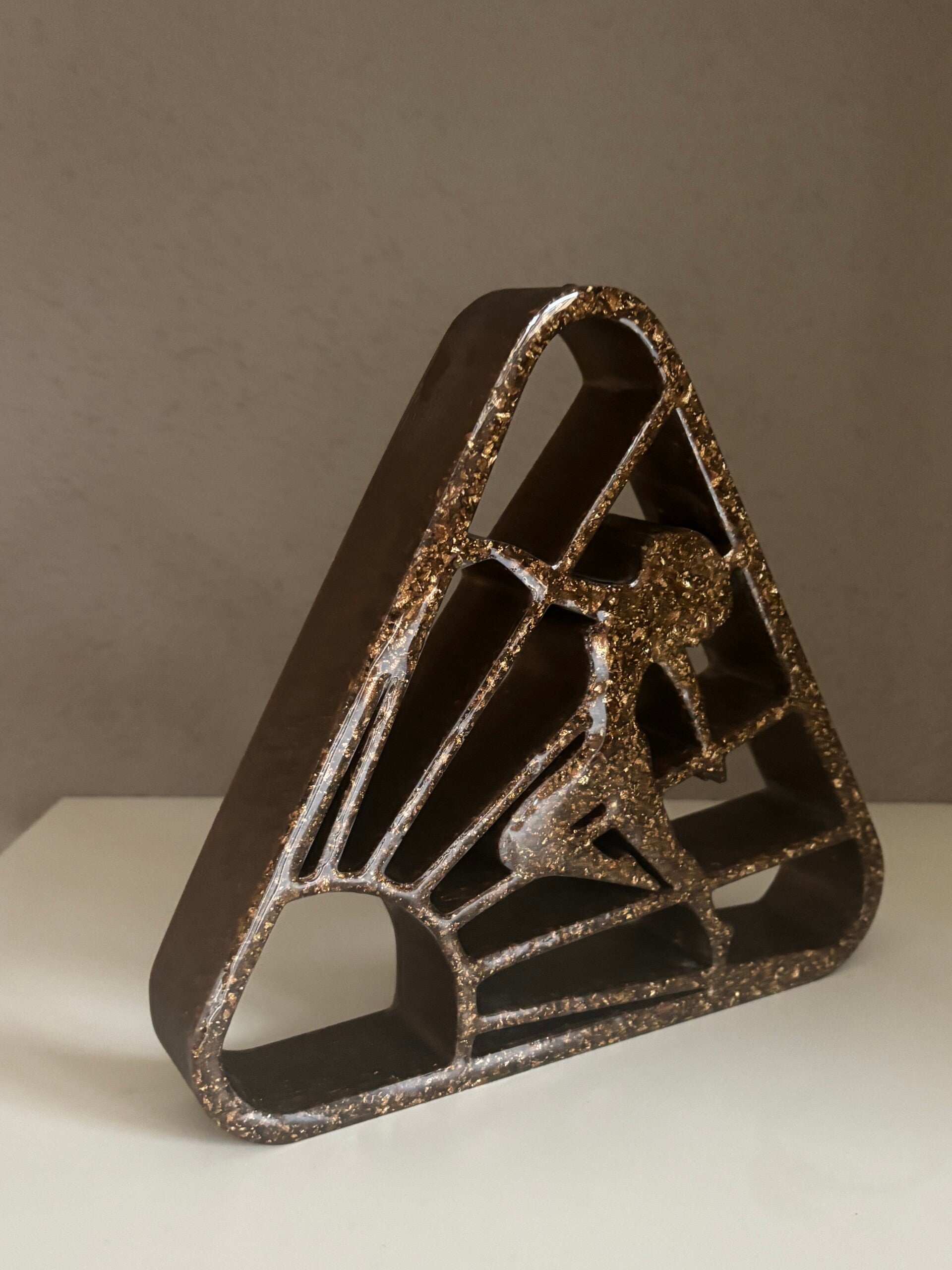 Uniek beeldje van het naturisme logo in brons/goud.